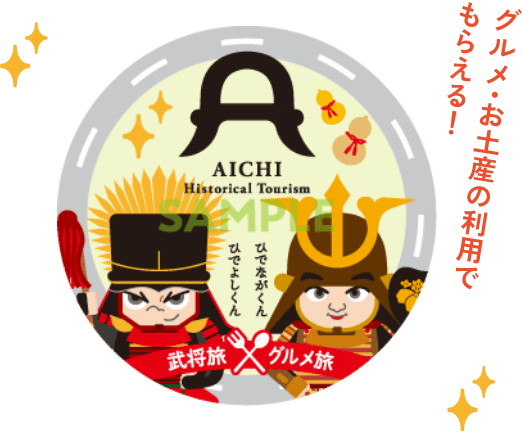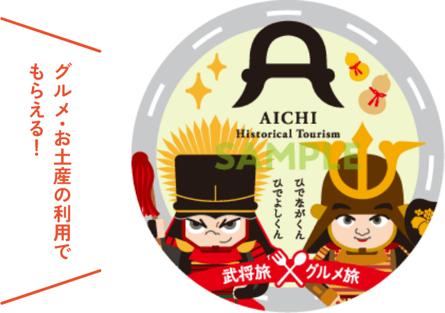 「ひでながくん・ひでよしくんドライブマップ」パンフレットに掲載されているサービスエリア、パーキングエリアにて対象の「あいち三英傑パワーメシ」、または掲載されている飲食店・土産店において、【パンフレット提示特典】を利用された方。