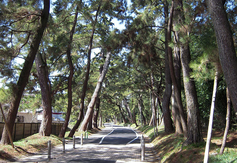 松並木は江戸幕府の政策として東海道沿いに植林された。東海道御油宿と赤坂宿の間、約600メートルにわたって続くクロマツの並木が往時の景観を伝えている。