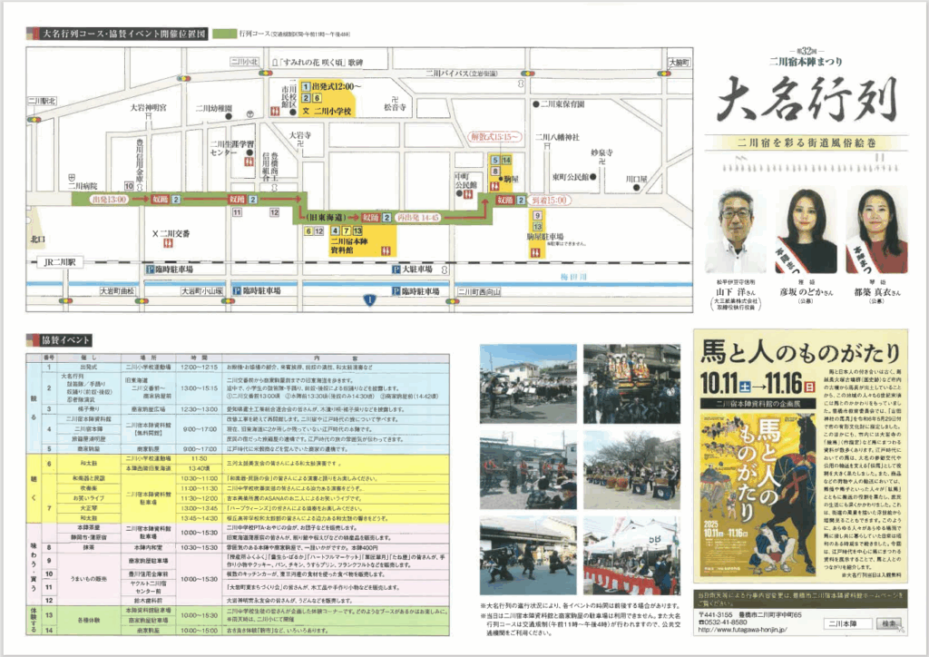 | お問い合わせ | 主催:二川宿本陣まつり「大名行列」開催実行委員会 (事務局:二川宿本陣資料館) 電話番号:0532-41-8580 ※月曜休館 |