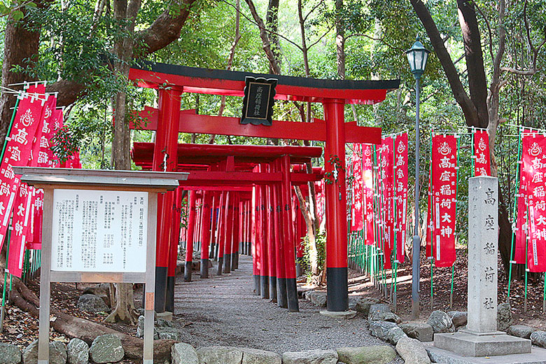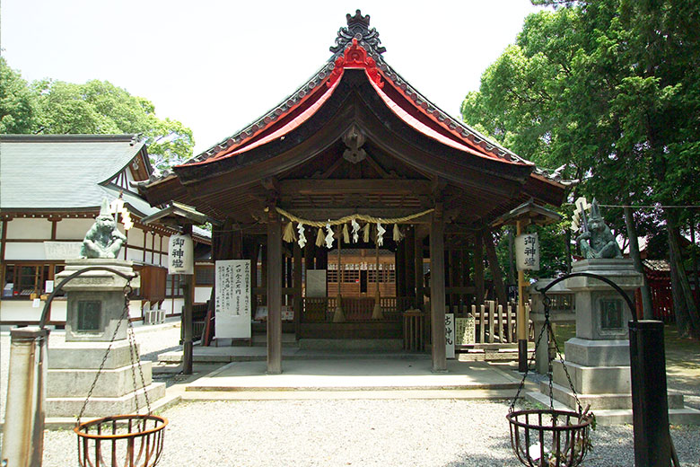 熱田神宮の摂社である高座結御子神社の境内に鎮座する。秀吉が幼少期に母に連れられ参拝したと伝わることから「太閤出世稲荷」とも呼ばれる。