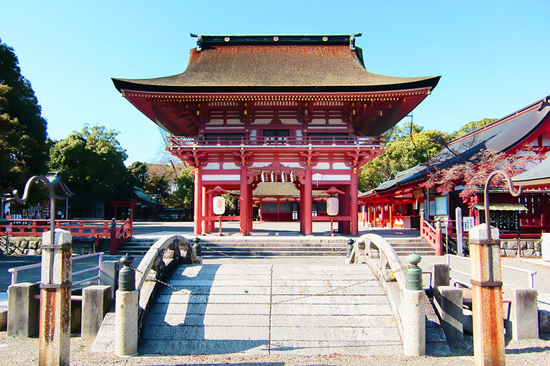 建速須佐之男命と大穴牟遅命を御祭神とし、古くは除疫、授福の神である「牛頭天王社」とも呼ばれ、京都の八坂神社と並ぶ天王社として崇められている。また、全国に3000以上も点在する津島神社の総本社でもある。「楼門」は豊臣秀吉の寄進と伝わる。